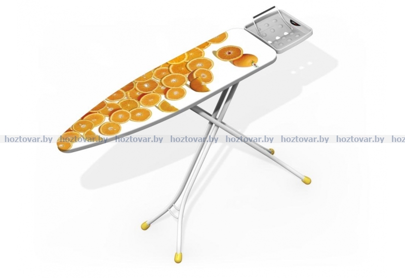 Стальная гладильная доска, оснащенная подставкой для утюга с переворотом для левшей. Трубчатые ножки. Чехол из 100% хлопка с мольтоновой подкладкой. С разнообразным дизайном чехлов.