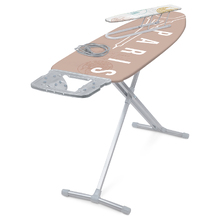 Гладильная доска с электросоединителем и подставкой под утюг, регулируемая по высоте.