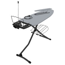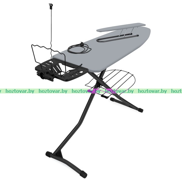 Гладильная доска с электросоединителем и подставкой под утюг, регулируемая по высоте. Удобная полка для белья и переносной подрукавник.