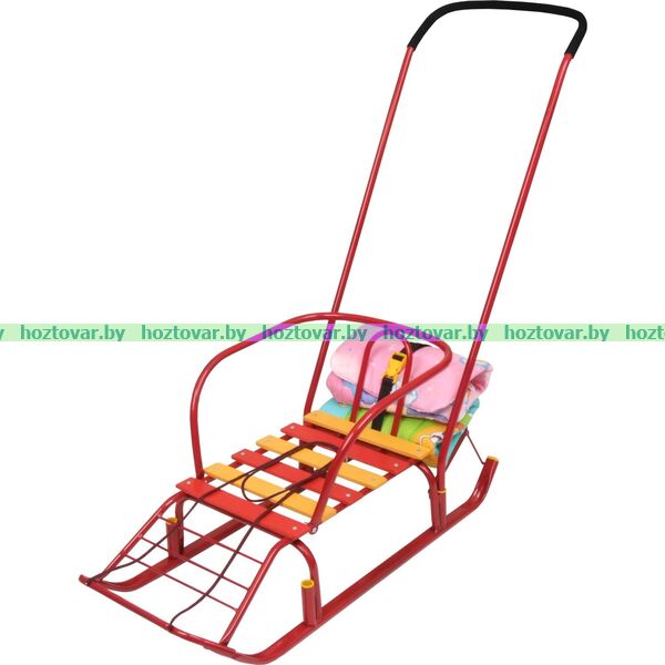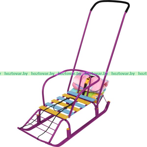 Достоинства наших санок: качество, безопасность, эргономичность, яркие цвета. — плоские полозья 30 мм. — поперечная рейка. — ручка два положения. — пластиковые вкладыши под толкатель. — ступенчатая подножка. — багажник (160х250) с крепежным ремнем для багажа. — длина сиденья 460 мм. — ширина сиденья 290 мм. — вес санок без ручки 3,5 кг.