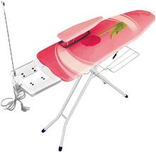 Размеры поверхности для глажки: 120х38 см. В основе стола - цельный лист металла с отверстиями для прохождения пара. Покрытие - хлопок с мольтоном. Подставка с невоспламеняющимися силиконовыми приспособлениями. Оборудована полкой для белья. Размер доски в сложенном состоянии: 38х156х10 см. Цвет чехла: в ассортименте Цвет ножек: белая эмаль Вес доски: 7.5 кг.