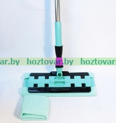 Телескопическая металлическая ручка . Длина швабры в разобранном виде 126см. Насадка из микрофибры. Размер насадки 35смх15см. В комплекте идет дополнительная салфетка из микрофибры.