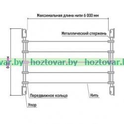 Количество бельевых веревок 7. Максимальная длина 6 м. Сушилка для белья настенная для кухни, балкона, лоджии, ванной комнаты. Упаковка: пленка