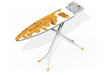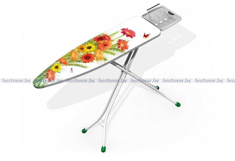 Стальная гладильная доска, оснащенная подставкой для утюга с переворотом для левшей. Трубчатые ножки. Чехол из 100% хлопка с мольтоновой подкладкой. С разнообразным дизайном чехлов.