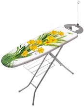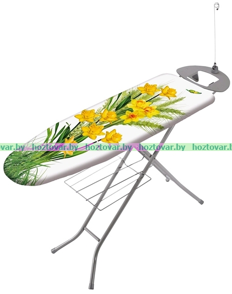 Размер: 122х38 см Основа: перфорированный лист Материал: сталь с полимерным покрытием Максимальная высота: 95 см Ножки (диаметр): 2,2 см Подставка под утюг: есть Полка для белья: есть Держатель шнура: есть Электрическая розетка: есть Вес: 5,7 кг