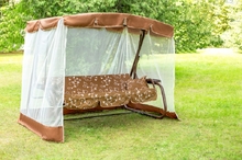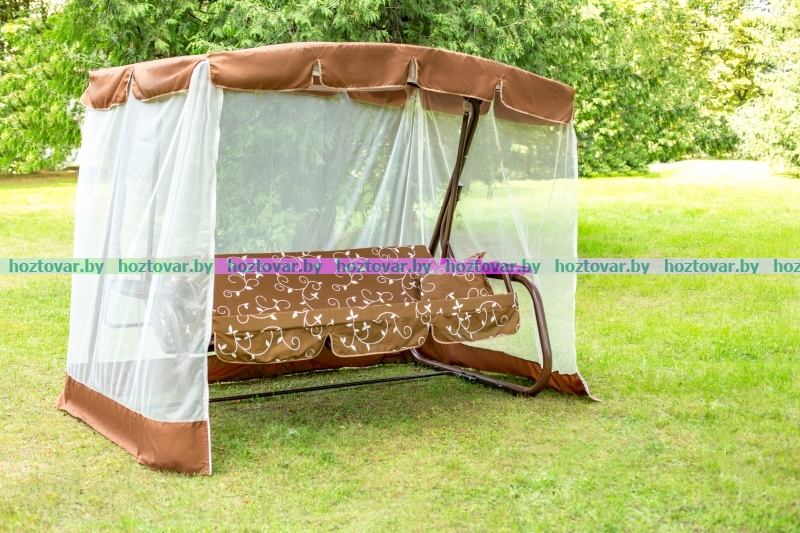 Тент: тент ткань с водоотталкивающей отделкой 100% п/э плотность 141г/м2, с противомоскитной сеткой (полотно гардинное основовязаное 100% п/э плотность 39г/м2) - фиксация сетки на тканевом тенте осуществляется с помощью горизонтальных и вертикальных застежек – «молний».