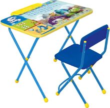 Комплект складной. Подходит для кормления, игр и обучения. Поверхность столешницы ламинированная с нанесением ярких познавательных рисунков. На поверхности стола можно рисовать маркером на водной основе. Сиденье стула мягкое, моющийся материал. Пенал в подарок. Возраст от 3 до 7 лет. Материал металл, пластик. Размер столешницы 600х450 мм. Высота стола 580 мм. Размер сиденья стула 310х270 мм. Высота до сиденья 320 мм. Высоты спинки стула 570 мм. Пенал есть. Цвет каркаса голубой.