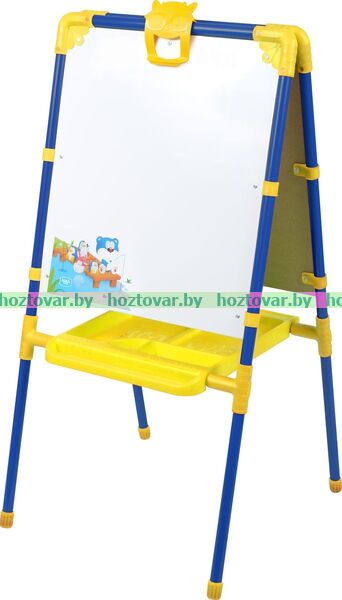 Двухсторонний мольберт для детей от 3 лет. • 2 рабочие поверхности: для рисования мелом и для рисования маркером и магнитов. • Высота 1020 мм. • Размер рабочей поверхности 530х460 мм. • Пенал для хранения мелков, маркеров.