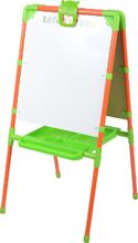 Двухсторонний мольберт для детей от 3 лет. • 2 рабочие поверхности: для рисования мелом и для рисования маркером и магнитов. • Высота 1020 мм. • Размер рабочей поверхности 530х460 мм. • Пенал для хранения мелков, маркеров.