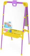 Двухсторонний мольберт для детей от 1,5 лет. Внимание! В комплекте мелкие детали! • 2 рабочие поверхности: для рисования мелом, для рисования маркером и магнитов. • Регулировка высоты от 755 до 1100 мм. • Размер рабочей поверхности 530х470 мм. • Пенал для хранения мелков, маркеров. • Цветные счеты.. • Магнитный набор в комплекте (русская азбука, цифры, знаки препинания, мозаика).