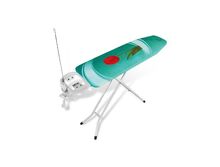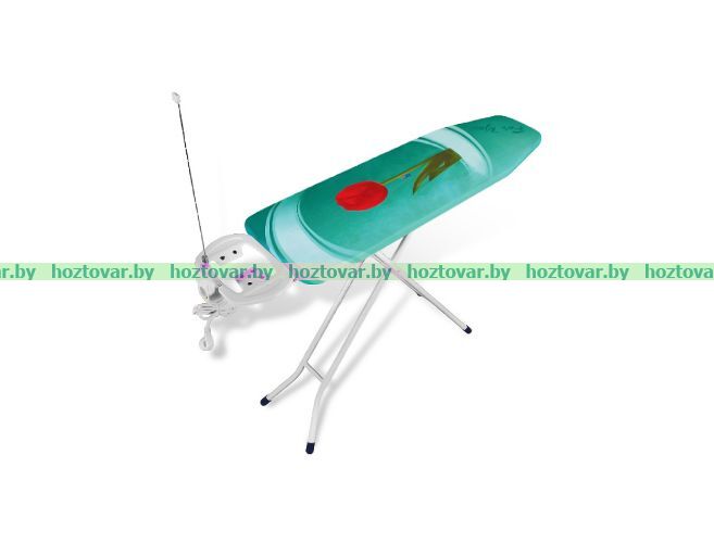Размеры поверхности для глажки: 112х34 см. Основе стола - металл (сплошной). Накидка - хлопковая ткань, подкладка - синтепон. Подставка с невоспламеняющимися силиконовыми приспособлениями. Размер доски в сложенном состоянии: 34х142х8 см. Цвет чехла: в ассортименте Цвет ножек: белая эмаль Вес доски: 5 кг.