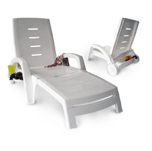 Шезлонг складной на колесах, с ящиком - это легкий, удобный в транспортировке пластиковый шезлонг, который не только очень прочный, но и очень удобный. Шезлонг складной на колесах - отличный вариант для частного дома. Материал: пластик Размер: 1860x765x890 мм Цвет: белый