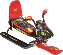 Снегокат Ника-Snowpatrol(СНД3) "Робот черн/красн велоруль". Снегокат с обтекателем предназначен для детей в возрасте от 4 до 12 лет. Имеет сборно-разборную конструкцию из стальных труб. Лыжи изготовлены из морозостойкой пластмассы. Сиденье мягкое, обтянутое искусственной кожей с рисунком. На передней лыже-буксировочный трос-рулетка. Меняя съемные детали, можно изменить внешний вид снегоката от сказочного звездолета до гоночного байка. Длина, мм 1070. Ширина, мм 540. Высота, мм 470. Высота по сиденью, мм 270. Ширина колеи, мм 370. Размер сиденья, мм 520х210. Грузоподъемность не более, кг 100. Масса, кг 7,6.