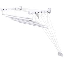 Потолочно настенная сушилка для белья Gimi Lift - это очень качественная реализация классической подвесной сушилки. Данную сушку можно крепить как к потолку так и к стене, все кронштейны и крепеж есть в комплекте. Металлические штанги сушилки для белья Лифт на тросиках можно опустить вниз для развешивания белья, а затем уже вместе с бельем поднять к потолку для сушки, чтобы освободить пространство. Подходит для балконов и ванных комнат, а также для открытых пространств. Рабочая длина: 10.9м. Максимальная нагрузка: 15кг. Размеры: 180x45,5x135cм. В продаже еще есть размеры 100, 120, 140, 160, 200.
