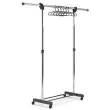 Вешалка-сушилка "PACO SUPER" Материал: сталь с блестящим хромовым покрытием и пластиковая отделка разных цветов (черный, голубой, оранжевый) Максимальная нагрузка до 25 кг. Максимальная высота 172 см. Высота регулируется. 6 вешалок, 80 см места для обуви. Длина верхней рабочей штанги от 80 см до 147 см. Подвижные опоры. Производство: Gimi, Италия